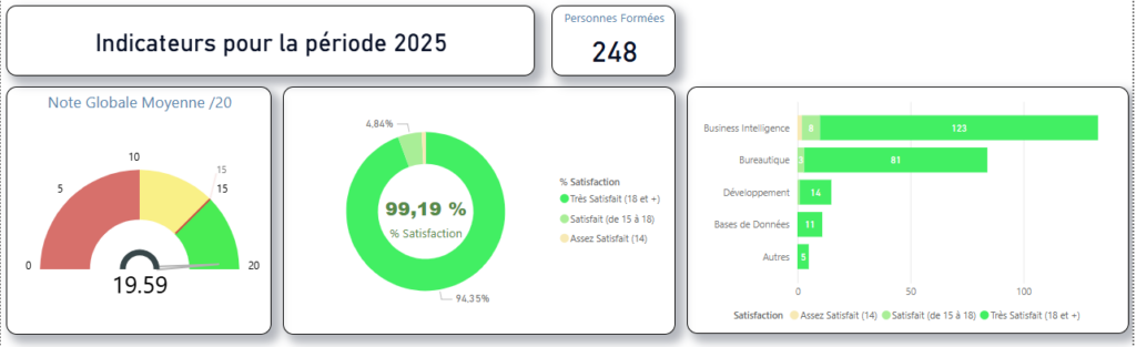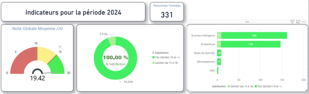 Le taux d’accomplissement des formations est de 100%. Le taux d’abandon est de 0%.